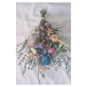 青バラを中心にそれを取り囲む赤、紫色のバラやトルコキキョウ、スターチス。大人っぽいイメージで美しく花々が溶け込み一つの花束となり日常にそっと寄り添いますように。